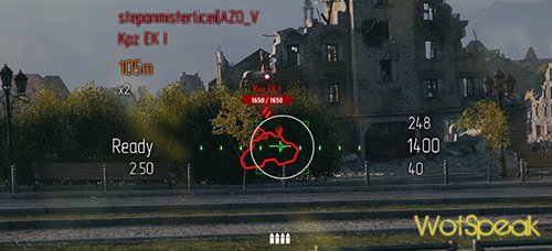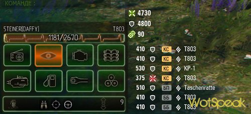 С установкой этой модификации воевать становится значительно проще. Значки всех узлов и жизненно важных органов техники стали значительно больше. Для них применен контрастный зеленый цвет. При повреждении или выводе из строя элемент загорается красным или оранжевым сигналом, заметить который просто невозможно. К нововведениям относится увеличенный индикатор целостности машины. Широкая полоса, идущая поверх панели, дает четкое представление, сколько еще «здоровья» осталось. Еще одной интересной особенностью этого мода стало перемещение спидометра в центр экрана, к прицелу. Возможно, кому-то такой вариант и не понравится. Но если пересесть за рычаги управления МТ-25 или «Чаффи», то все станет на свои места. Видя показания скорости перед глазами, можно сразу понять, цела ходовая и мотор, или уже повреждены.
